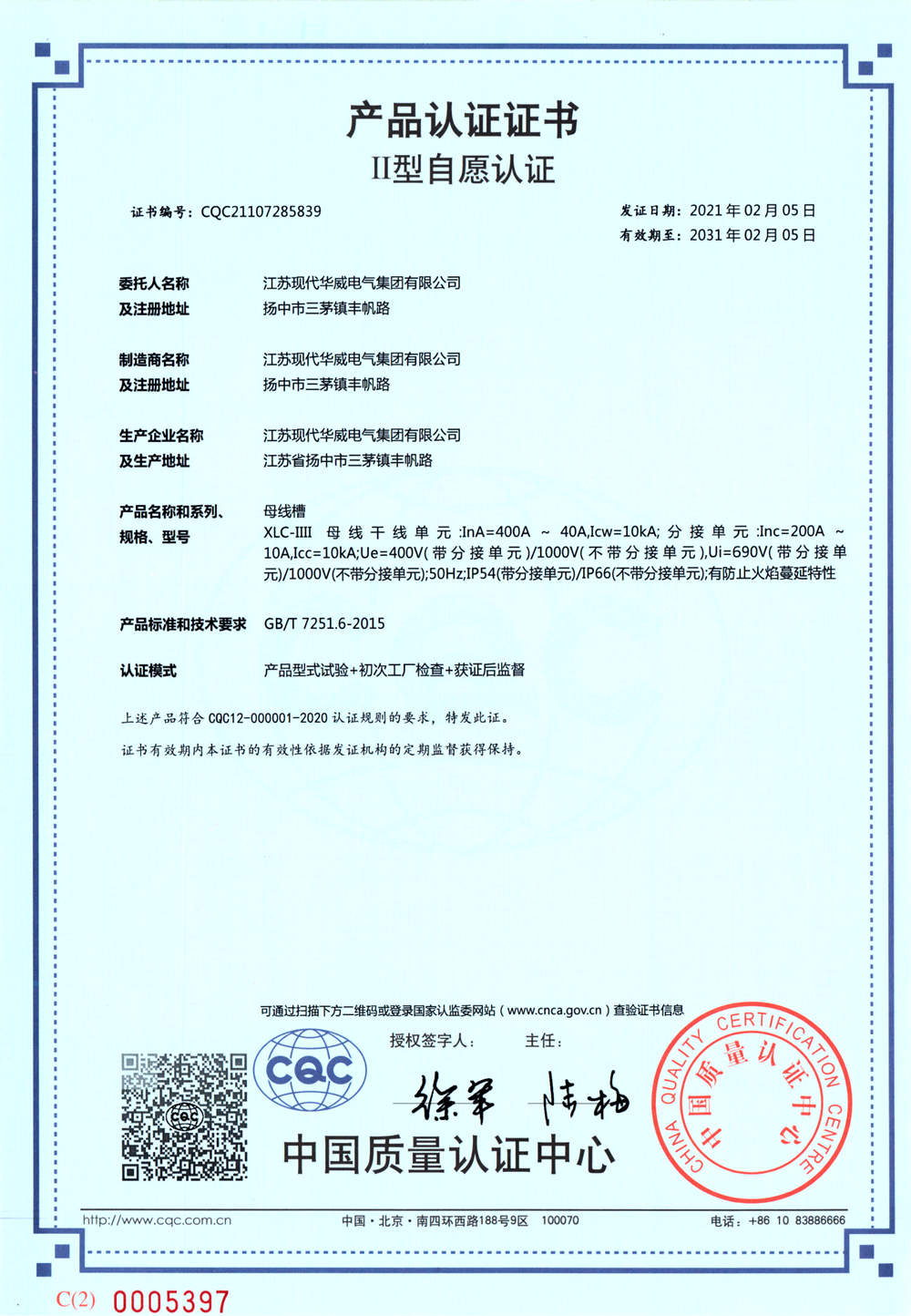 江蘇現代華威電氣集團(江蘇現代華威高壓電氣有限公司)位于中國生態示范區水上花園——江蘇省揚中市。集團是專業生產開關柜、母線槽、電纜橋架、母線槽配件、氟塑制品等系列產品的企業。生產設備齊全,有大中型設備90余套及三條生產線,其中有從國外引進的鈑金柔性加工生產線、大型液壓機組等。檢測設備齊全、工藝科學,···